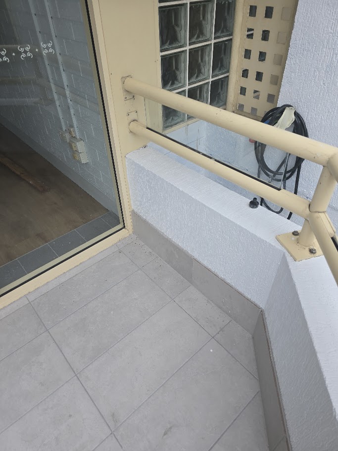 The property owner reported a leaking balcony causing water ingress into the shop below. The balcony area showed signs of high moisture, cracked and porous grout, failed waterproofing, and insufficient drainage. The issue was not only creating visible water damage but also disrupting the tenants operating in the lower tenancy.